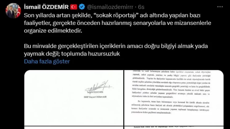 “Son yıllarda artan şekilde, 'sokak röportajı' adı altında yapılan bazı faaliyetler, gerçekte önceden hazırlanmış senaryolarla ve mizansenlerle organize edilmektedir. Bu içeriklerin amacı doğru bilgiyi yaymak değil; halkı kin ve nefrete yönlendirmek, kamu düzenini bozmak ve dezenformasyon oluşturmaktır.”