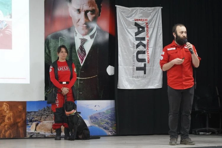 Ulu Önder Mustafa Kemal Atatürk’ün “Felaket başa gelmeden evvel önleyici ve koruyucu tedbirleri düşünmek lazımdır, geldikten sonra dövünmenin yararı yoktur.” sözünden yola çıkarak sunumunu sürdüren Mahmut Kovan, “Biz deprem ülkesinde yaşıyoruz. Depremden sonra değil öncesinde önlemlerimizi almalıyız. Lütfen, öncelikli olarak kolonlarında eksilme var mı diye apartmanlarınızı kontrol ediniz. Acil Durum ve Afet Planını muhakkak oluşturunuz. Çağrı Merkezi 112’yi unutmayın. İlkel bir teknoloji olsa dahi SMS güvende olduğunuzu yakınlarınıza bildirmek için en güvenli iletişim yoludur. Deprem öncesinde; eşyalarımızı duvara sabitlemeliyiz. Sabitlenmeyen eşyalar kaçış yolumuzu kapatacak, ciddi yaralanmalara yol açacaktır.