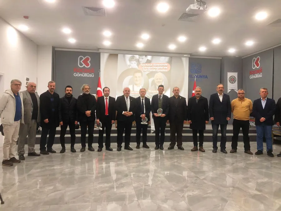 Anne tarafı Kocaeli Derbent’li olan avukat Ersan Barkın’a Selçuklu Düşünce Kulübü başkanı Süleyman Pekin, moderatör Taylan Katak’a ise Yesevi Ocağı başkanı Eren Elmalı plaket verdi.
