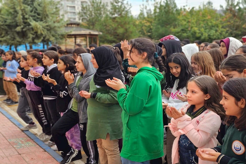 Mardin merkez Artuku ilçesinde bulunan Hacı Suphiye Bölünmez İmam-Hatip Ortaokulu öğrencileri, mazlum Filistin için dua etti.