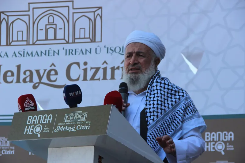 Melayê Cezerî gibi zatların İslam'ın yıldızı olduğunu belirten Molla Mizgin, "Onlara baktığımızda onlarda iki hususu görüyoruz. Birincisi Allah’ın bütün insanlık için yarattığı ve Kur’an’ın dili olan Arapça'dır. Bu dil küresel bir dildir. Bu dili öğrenmişler ve korumuşlar. Fakat bu dili öğrendiklerinde kendi kavimlerin dillerini unutmamışlar. Bu memleket 1400 yıldır İslam’ın hakimiyeti altındadır. Bu memleketin halkı Müslümandır. Fakat görüyoruz ki bu halk Kürtçe/Kurmanciyi unutmamışlar." dedi.