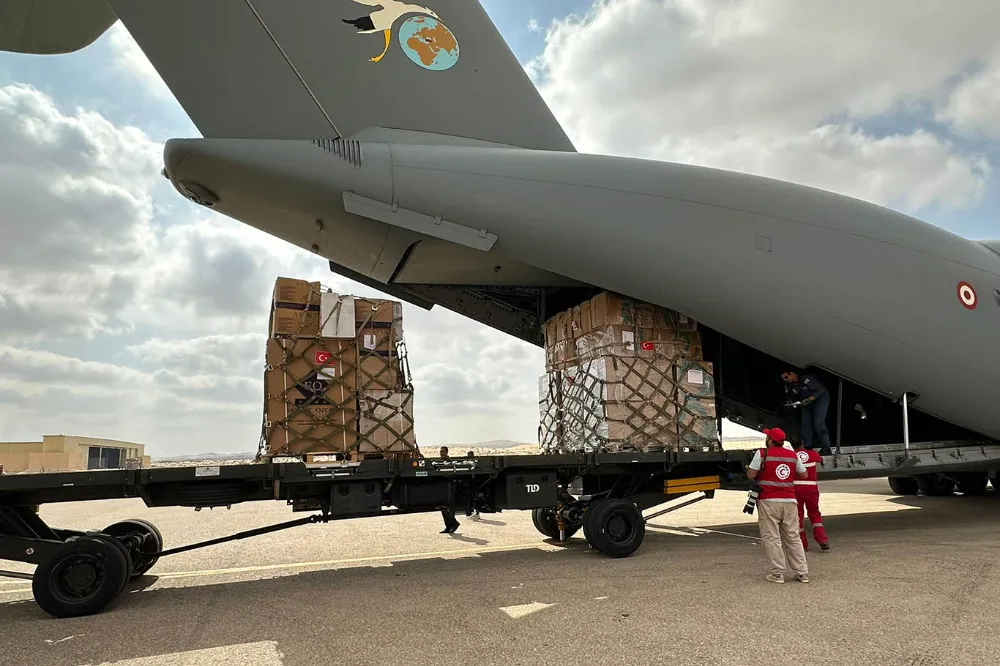 Gazzeli kardeşlerimizin ihtiyaç duyduğu insani yardım malzemelerini bölgeye ulaştırmaya devam ediyoruz. Hava Kuvvetlerimize ait bir uçak daha yardım malzemelerini Mısır’a ulaştırmak üzere Ankara Etimesgut’taki 11’inci Hava Ulaştırma Ana Üs Komutanlığından hareket etti.… pic.twitter.com/UMGjAB7e4D