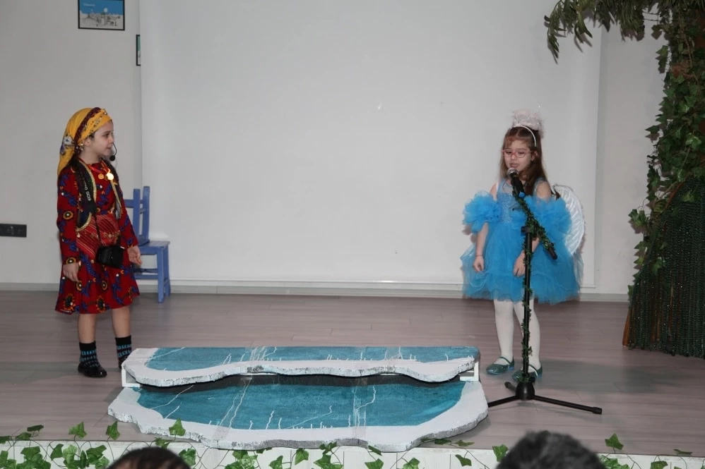 Bursa'nın Mudanya ilçesinde Halitpaşa Ortaokulu’nda, yıl sonu etkinlikleri kapsamında 5 yaşındaki “Baba Sınıfı” öğrencilerinin sahnelediği “Deniz Anadolu Diyarında” tiyatro oyunu, Anadolu’nun kültürel zenginliklerini ve dilin güzelliklerini miniklerin gözünden yansıtarak izleyicileri büyüledi.