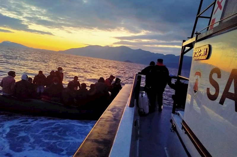 Sahil Güvenlik Komutanlığı ekipleri, ilçe açıklarında lastik bottaki 5'i çocuk 19 düzensiz göçmeni yakaladı.