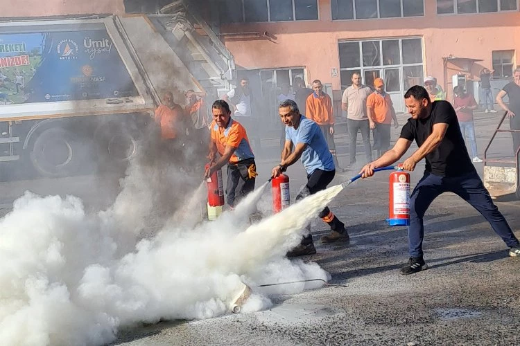 Topçular Mahallesi’nde bulunan Temizlik İşleri Müdürlüğü’ndeki tatbikat, Afet İşleri Müdürlüğü’nce gerçekleştirildi. Sivil savunma uzmanınca verilen teorik ve uygulamalı eğitimde olası bir yangın durumunda alınacak önlemler bilinçli hareket edilerek oluşan hasarın en asgari düzeye indirilmesi, herhangi bir kargaşaya mahal verilmeden sorumluluk ve görev bilinciyle hareket edilmesi hedeflendi.