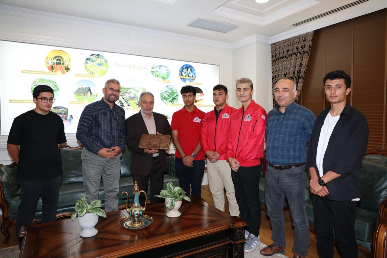 Kayseri Talas Belediyesi Espor ve İnovasyon Merkezi’nde eğitim alan Hürriyet Mesleki ve Teknik Anadolu Lisesi öğrencileri, TEKNOFEST Kıbrıs’ta elde ettikleri başarıları paylaşmak ve teşekkürlerini iletmek üzere Talas Belediye Başkanı Mustafa Yalçın’ı makamında ziyaret etti.