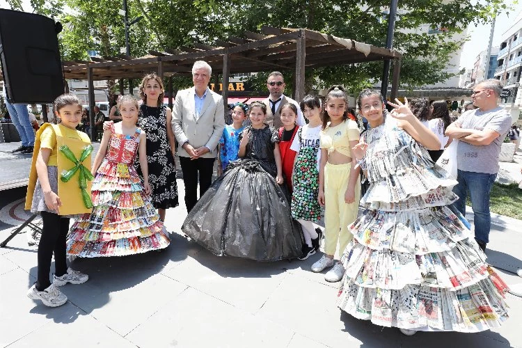 İzmir'de Narlıdere Belediyesi’nin 5 Haziran Dünya Çevre Günü ve Türkiye Çevre Haftası kapsamında düzenlediği etkinliğe katılan öğrenciler, geri dönüşüm malzemelerden hazırladıkları kıyafetlerle “Atıkları geri dönüştürelim, doğamıza hep birlikte sahip çıkalım” çağrısı yaptı.