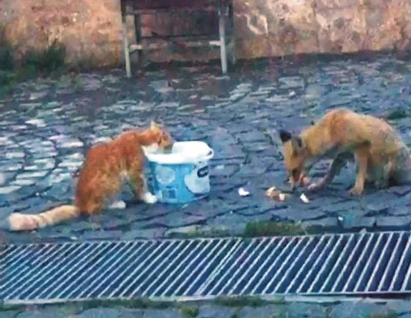 1987 yılında UNESCO tarafından Dünya Kültür Mirası kapsamına alınan ilk kültürel miras alanı olan Nemrut Dağı'nda bulunan ziyaretçi karşılama bahçesinde evcil kedi ve doğada yaşayan tilkinin dostluğunu görenler şaşkınlığını gizleyemiyor. Bu manzarayla karşı karşıya kalan yerli ve yabancı turistler ise anı ölümsüzleştirerek anı yakalıyor.
