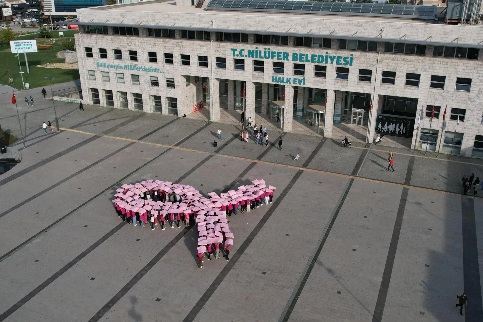 Etkinliğin sonunda, Nilüfer Belediyesi çalışanları ve ONKODAY gönüllüleri, Nilüfer Belediyesi Halk Evi önünde dev bir pembe kurdele oluşturarak meme kanseri konusunda farkındalık yarattı.