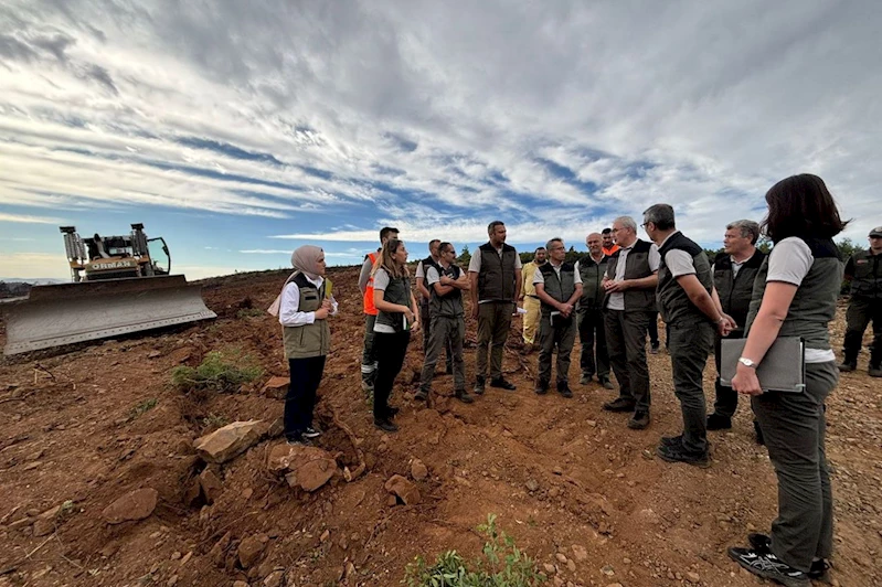 Ziyaret kapsamında, yangın sonrası yapılan müdahaleler, yanmış ağaçların sahadan uzaklaştırılması, toprak hazırlığı ve yeniden ağaçlandırma sürecine ilişkin detaylı bilgi aldı.
