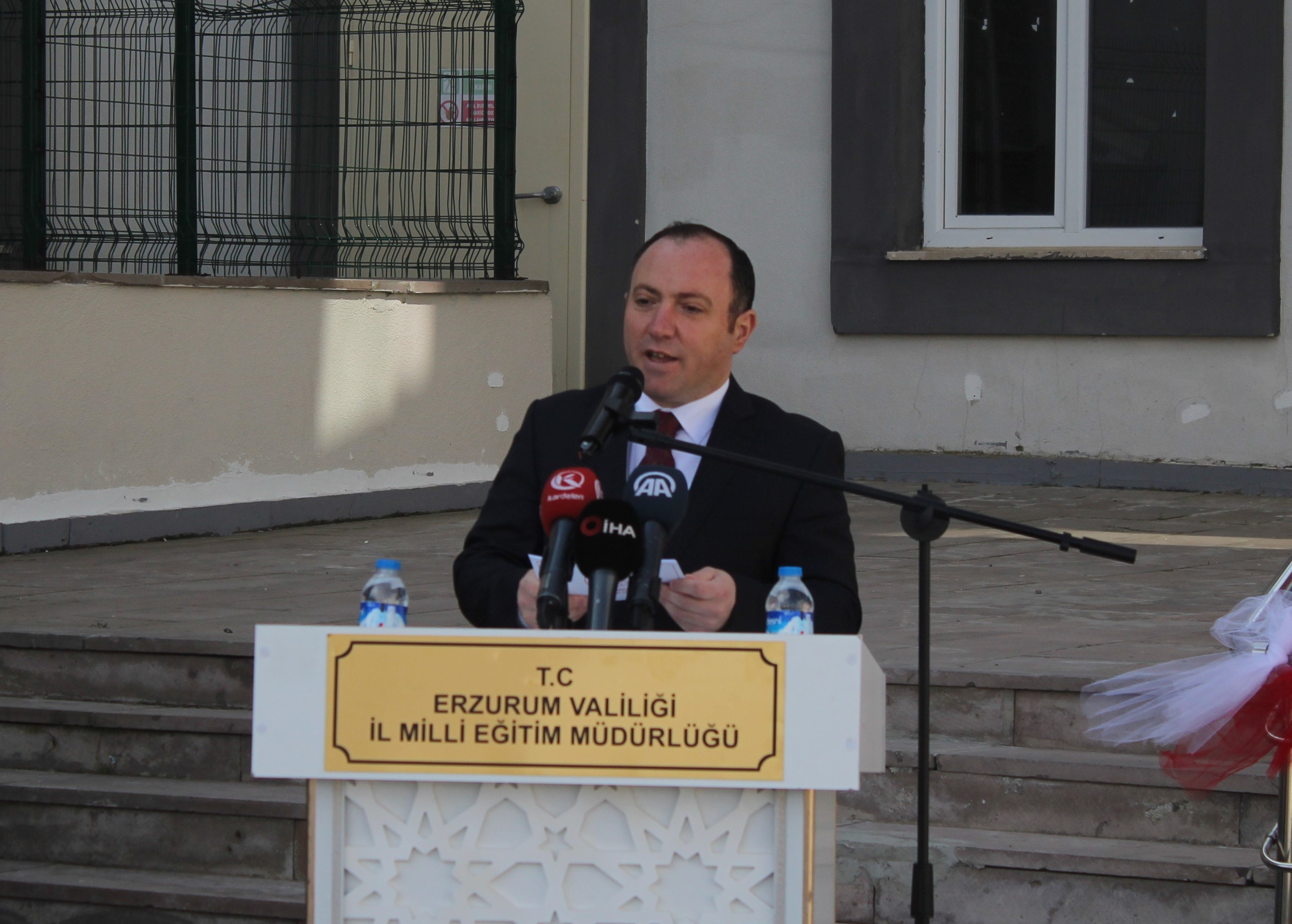 Erzurum Valisi Mustafa Çiftçi’nin yaptığı konuşmada, ‘‘Geleceğimizin teminatı sevgili öğrencilerimizi, göz aydınlığımızı, yavrularımızı geleceğe en iyi şekilde hazırlamak, onları daha donanımlı hale getirmek, böylece vatana, millete faydalı bireyler olarak yetişmelerini sağlamak, en büyük dileğimiz ve temennimizdir.’’ ifadelerine yer vererek günümüzde eğitimin sadece okullarla sınırlı olmadığını, internetin ve sosyal medyanın yaygınlaşmasıyla bunların da eğitimin birer parçası haline geldiklerini belirtti. Çiftçi, ‘‘Okullarımızın ağırlığı azaldı belki. Ancak yine de okullarımız eğitimin kalbi ve merkezi olmaya devam ediyor.’’ ifadelerini kullanarak internetin yaygınlaşmasıyla beraber bilgi güvenliği ve elde edilen bilginin kullanımı noktasında da okula ve öğretmene tekrar ihtiyaç olduğunu hatırlatmak istediğini belirtti. ‘‘Bu manada hepimiz eğitimin ve öğretimin birer parçasıyız.’’ diyen Çiftçi, toplum olarak bu sorumluluğun herkesin omuzlarının üzerinde olduğunu ve dolayısıyla eğitimi, öğretimi sadece okula, öğretmene, Milli Eğitim camiasına ihale edilmemesi gerektiğini vurgulayarak ‘‘Toplum olarak bundan hepimizin sorumlu olduğunu ifade etmek istiyorum.” ifadesine yer verdi.