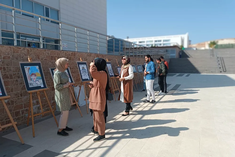 Siyonist işgal rejiminin Gazze'de gerçekleştirdiği çocuk katliamlarına dikkat çekmek ve bu konuda bir farkındalık oluşturmak amacıyla Gaziantep Üniversitesinde düzenlenen sergiye öğrencilerin ilgisi yoğun oldu.