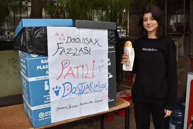 Öğrencilerden arda kalan yiyecekleri toplayan Mehmet Koç sokakta yaşayan hayvanlara veriyor. "Doyduysak fazlasını Patili Dostlarımıza" ismini verdiği projeye öğrenciler yoğun ilgi gösteriyor.
