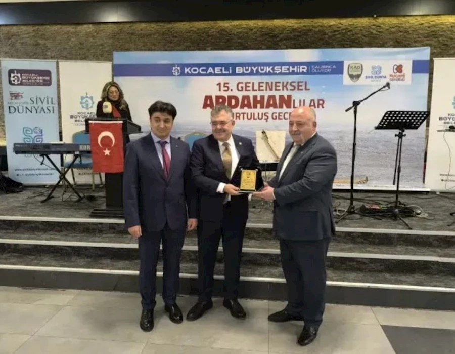Ardahanlı Sanatçılar Doğan Aktaş ve Çağla Öztürk’ün sahne aldığı folklor ekiplerinin izleyenleri coşturduğu gecede, Derneğin öğrencilere burs ve ihtiyaç sahibi ailelere yönelik yardım kampanyalarına katlılarından dolayı Kocaeli Milli Kuruluşlar Birliği Başkanı Yücel Alpay Demir’e plaket verildi.