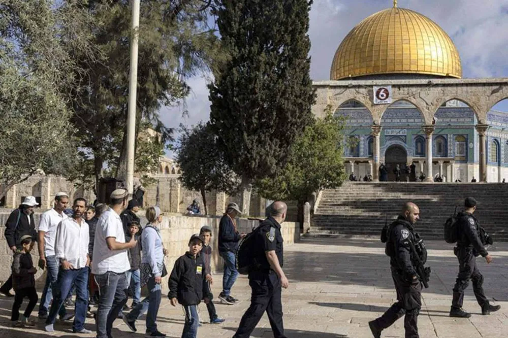Onlarca işgalci, Mescid-i Aksa'nın güneybatısındaki El-Meğaribe (Fas) Kapısı'ndan Harem-i Şerif'e girdi.
