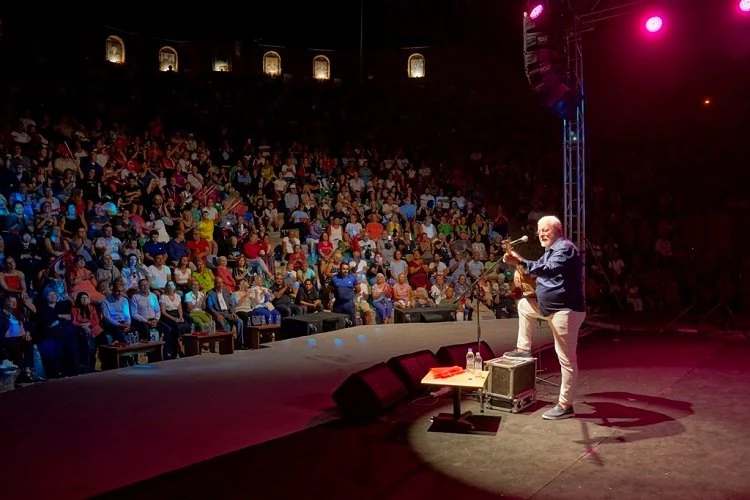 Ünlü sanatçı Onur Akın, Ayvalık’taki konserinin kalan süresinde; “Seviyorum Seni”, “Asi ve Mavi”, “Gaybana Geceler”, “Çam Kolonyası” gibi eserlerini amfi tiyatroyu adeta hınca hınç dolduran Ayvalıklılarla birlikte seslendirdi.