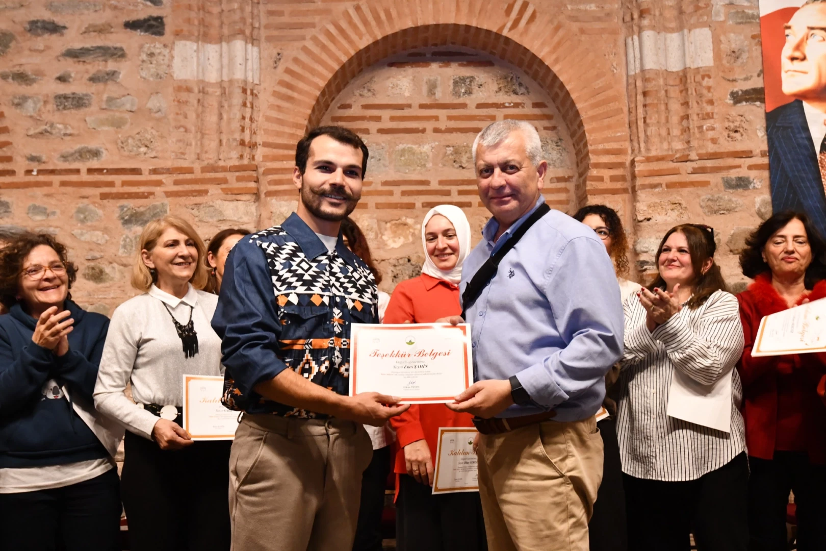 Ritim Atölyesi’nin ikinci dönemini başarıyla tamamlayan ve sertifikalarını alan kursiyerler, bu imkanı kendilerine sunduğu için Osmangazi Belediye Başkanı Erkan Aydın’a teşekkür etti.