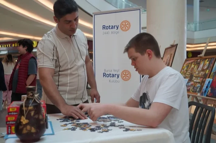 Herkes Duysun / BURSA (İGFA) - Bursa Yeşil Rotary Kulübü’nün öncülüğünde, 23 Nisan Ulusal Egemenlik ve Çocuk Bayramı ile Otizm Farkındalık Ayı etkinlikleri çerçevesinde “Odaklanma ve Dikkatin Dünyası” sergisi düzenlendi. KoruPark AVM’de açılan sergi, BTSO Baha Cemal Zağra Özel Eğitim Uygulama Okulu’nun otizmli öğrencisi 15 yaşındaki Kerem Kuvvet’in yapboz eserlerini sanatseverlerle buluşturdu.