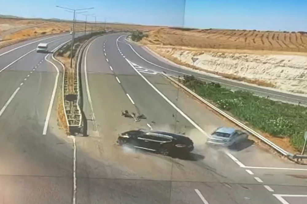 Şanlıurfa'da otoban girişinde meydana gelen ve bir kişinin yaralandığı kaza güvenlik kameralarına yansıdı.