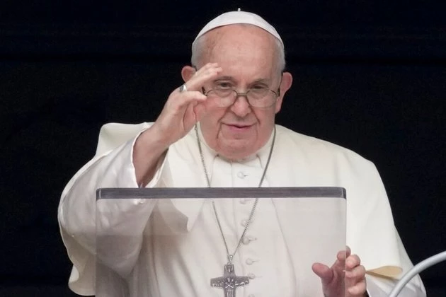 Papa Francis stüdyosunun penceresinden Angelus öğle duasını okurken insanlar Vatikan'daki Aziz Petrus Meydanı'nda toplanıyor, 27 Ağustos 2023.