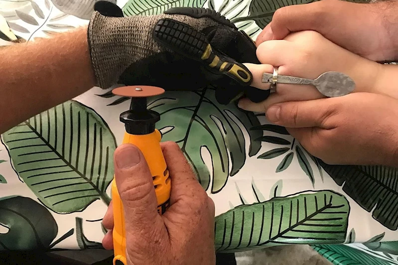 Ekipler, yüzüğü hem parmağa hem de yüzüğe zarar vermeden başarılı bir şekilde çıkardı.