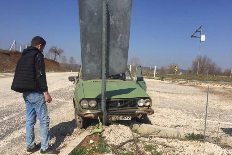 Bilecik’in Pazaryeri ilçesinde kontrolden çıkarak köy kavşağında yön tabelasına çarparak durabilen otomobilin sürücüsü şans eseri kazayı yara almadan atlattı.