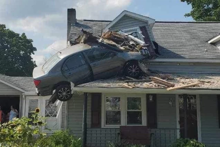 Araç uçarak bir evin ikinci katındaki yatak odasına girdi. Burada asılı kalan aracı çıkartmak için 911 ekipleri olay yerine sevk edildi.