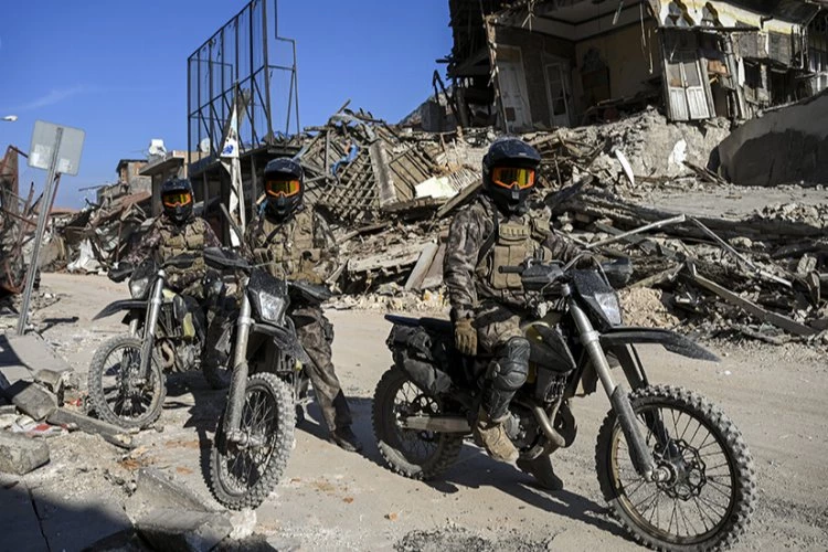 Depremlerin ardından kentteki Jandarma ve Polis ekipleri, vatandaşlarımızın güvenliği için çalışıyor. Güvenlik güçleri, özellikle hırsızlık ve yağma olaylarını önlemek amacıyla aralıksız denetim gerçekleştiriyor. ANKARA (İGFA) - Hatay'da görevlendirilen Emniyet Genel Müdürlüğü Özel Harekat Daire Başkanlığı bünyesindeki Özel Harekat Polisleri, yıkılan binalar nedeniyle kapanan sokaklarda veya araç giremeyen mahallelerde kros motosikletleriyle devriye geziyor. Vatandaşların yürümeye bile cesaret edemediği alanlarda kros motosikletlerle çalışan Polislerin faaliyetleri, dron ve aksiyon kameralarıyla görüntülendi. Görüntüler, İçişleri Bakanlığı'nın resmi internet sitesinde yayımlandı. https://youtu.be/X9yfUaHl8Yc