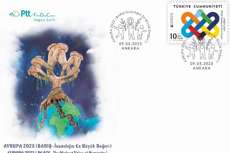 PTT AŞ tarafından 'AVRUPA 2023 (BARIŞ-İnsanlığın En Büyük Değeri)' konulu anma pulu ve ilkgün zarfı bugün tedavüle sundu.