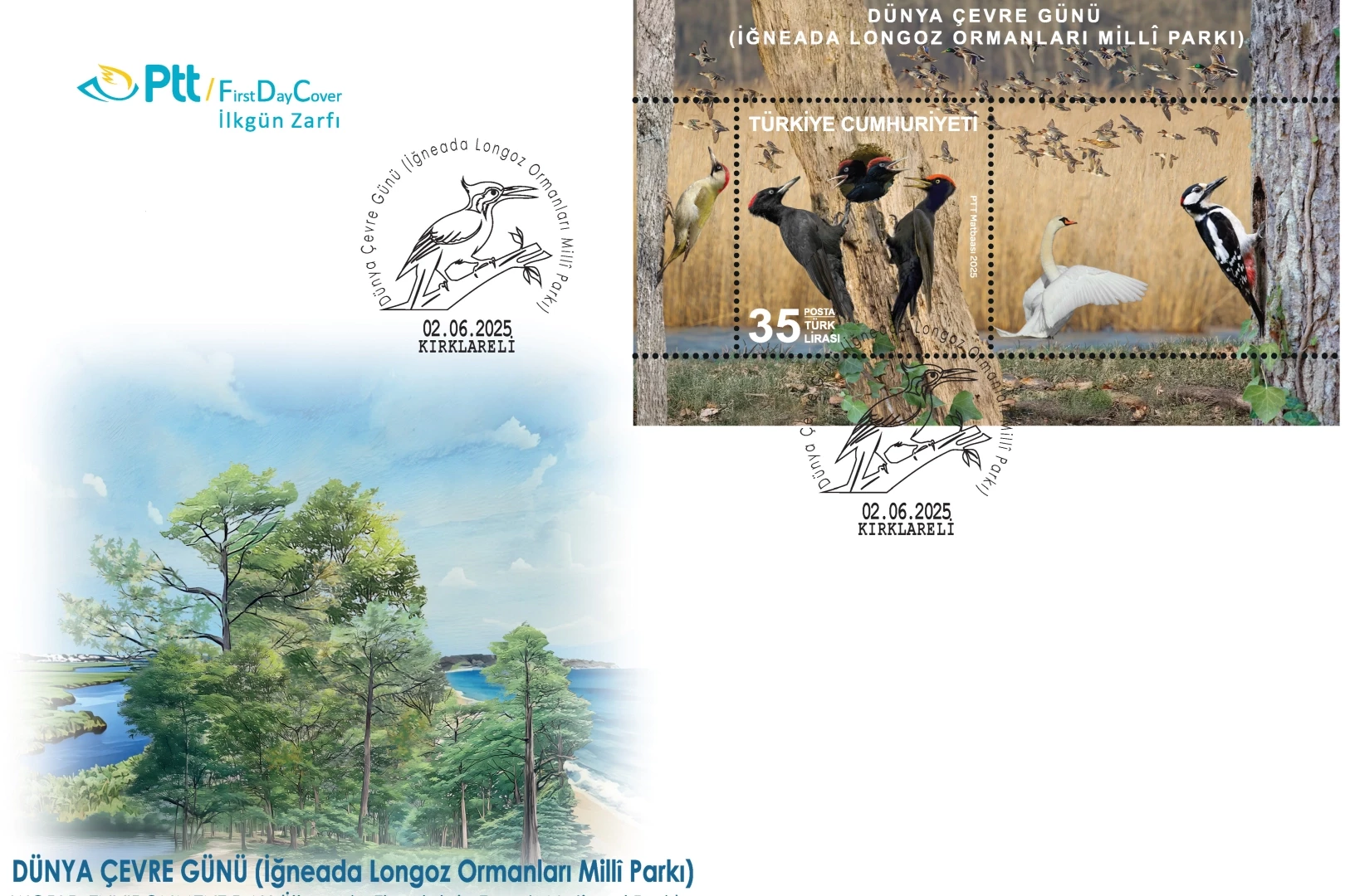 PTT AŞ tarafından “Dünya Çevre Günü (İğneada Longoz Ormanları Millî Parkı)” konulu anma pulu ve ilkgün zarfı 2 Haziran 2025 tarihinde tedavüle sunuldu.