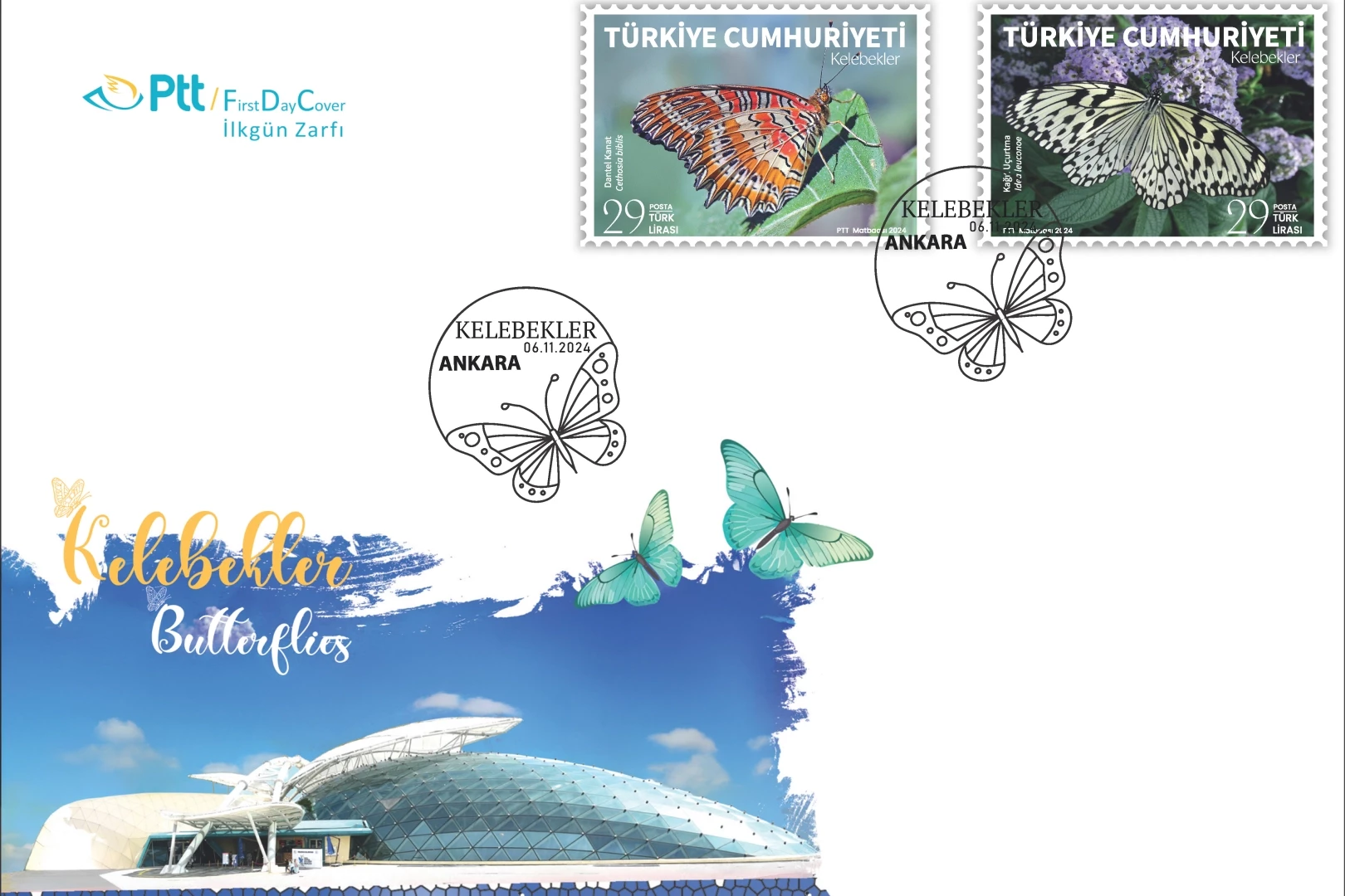 PTT AŞ tarafından “Kelebekler” konulu anma pulu ve ilkgün zarfı 6 Kasım 2024 tarihinde tedavüle sunuldu.