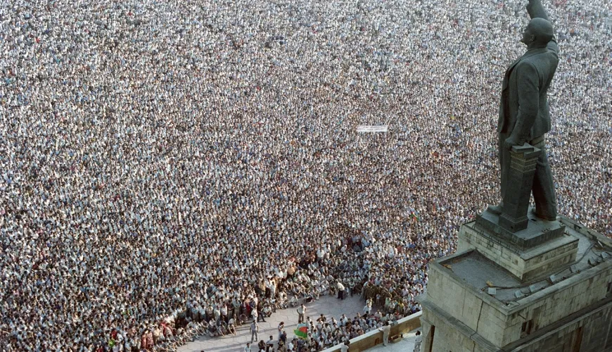 O gün yüzbinlerce insan başkentin dört bir yanından hareket ederek adeta bir kıvılcım barajı gibi Azadlık Meydanı'nı doldurdu. Bunların arasında tüm üniversitelerin öğrencileri ve öğretmenleri, teknik enstitüler, üretim işletmeleri çalışanları, inşaat şirketleri çalışanları, bilimsel enstitülerin lisansüstü öğrencileri vardı. Daha sonra bölgelerin işçi kolektifleri de mali katkılarıyla harekete katıldı. Hayatta kalan olmadı. İktidardaki Komünist Parti üyeleri, Komsomol üyeleri ve hükümet yetkilileri bile bir şekilde halk hareketine katıldı.