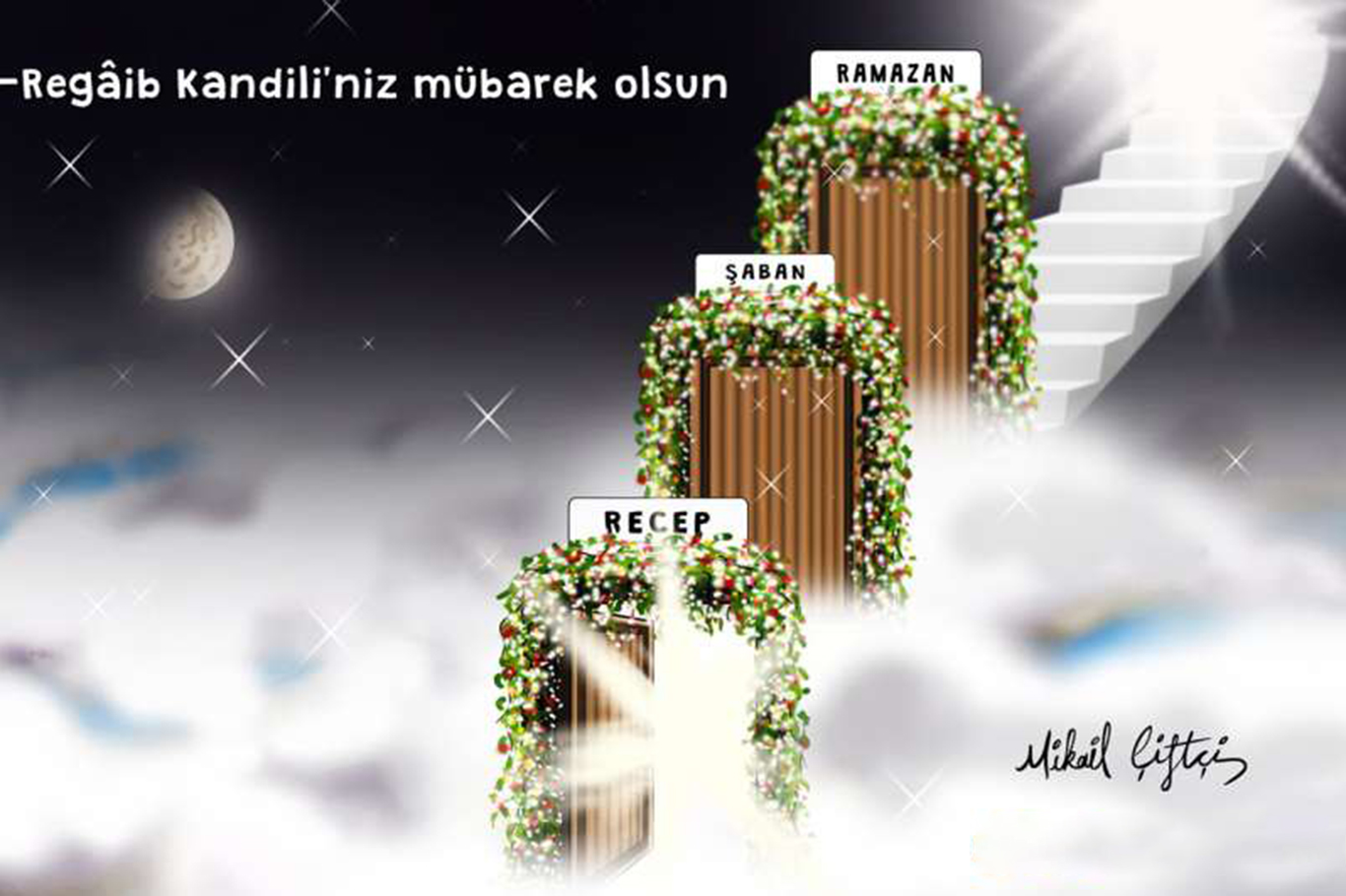 ​İslam âleminin özlemi ve heyecanla beklediği, içinde bin aydan daha hayırlı olan Kadir Gecesi'ni de barındırmaya mübarek üç aylar başladı. Recep'in yaşadığı, Regaib ve Mi'râc; Şaban arkadaşı Berat; Ramazan ayında ise Kadir Gecesi gibi dört ayrı geceyi içinde barındıran üç aylar, dua ve yakarışların Allah'a arz edilmesi, pişmanlık gözyaşlarıyla günahların yıkanması, yapılan ibadet ve taatlere verilen sevabın katlanması için kaçırılmaması fırsat olarak görülüyor Üç aylar bugün başladı. Regaib Kandili 26 Ocak Perşembe; Miraç Kandili 17 Şubat Cuma; Berat Kandili 6 Mart Pazartesi; Ramazan-ı Şerif'in Başlangıcı 23 Mart Perşembe; Kadir Gecesi 17 Nisan Pazartesi; Ramazan (Fıtr) Bayramı 1. Günü 21 Nisan Cuma günü idrak Yapılacak. Müslümanlara mübarek gecelerde Kur'an-ı Kerim okuması, istiğfar, dua ve zikir yapmaları tavsiye ediliyor.