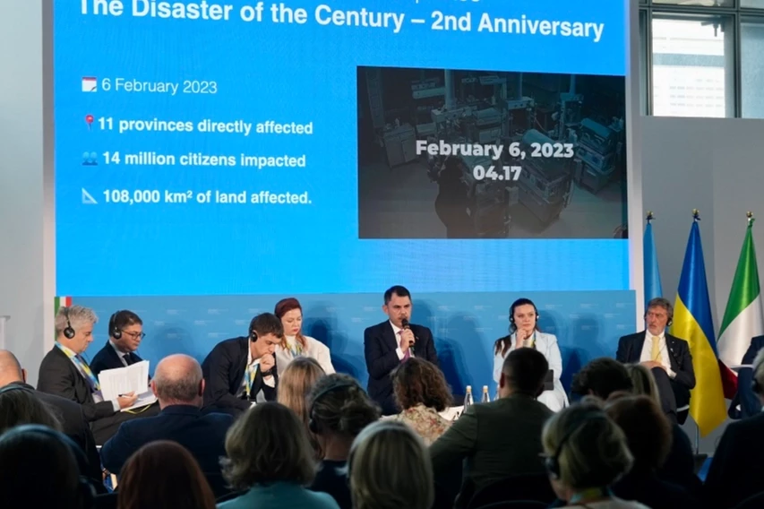 Çevre, Şehircilik ve İklim Değişikliği Bakanı Murat Kurum, Roma’daki Ukrayna İyileştirme Konferansı’nda Türkiye’nin deprem bölgesindeki inşa seferberliğini paylaşarak, Ukrayna’nın yeniden inşası için destek sözü verdi.