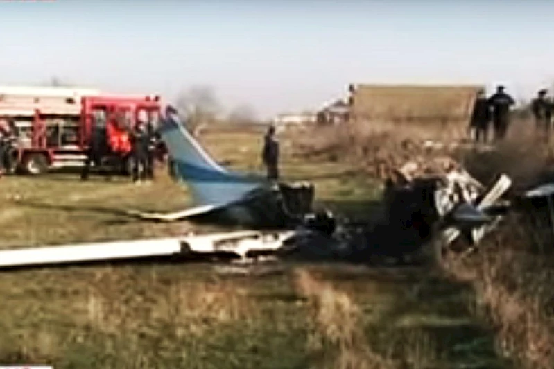 Romanya'nın batısındaki Arad kentinde eski bir fabrikanın bahçesine düşen küçük uçaktaki 2 kişi hayatını kaybetti.