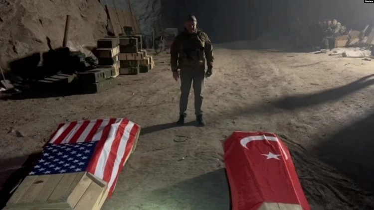 Wagner Grubu'na bağlı paralı askerlerin paylaştıkları bir videoda, iki ahşap tabutu çivileyerek kapattıkları ve tabutlardan birinin üzerine ABD diğerinin üzerine de Türk bayrağı koydukları görüldü.