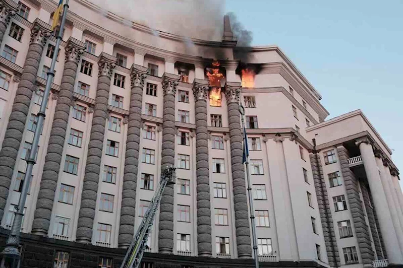 Başbakan Yulia Svyrydenko, Telegram'da yaptığı açıklamada, "İlk kez bir hükümet binası, çatısı ve üst katları dahil olmak üzere hasar gördü" dedi ve ekledi: "Kurtarma ekipleri yangını söndürüyor."