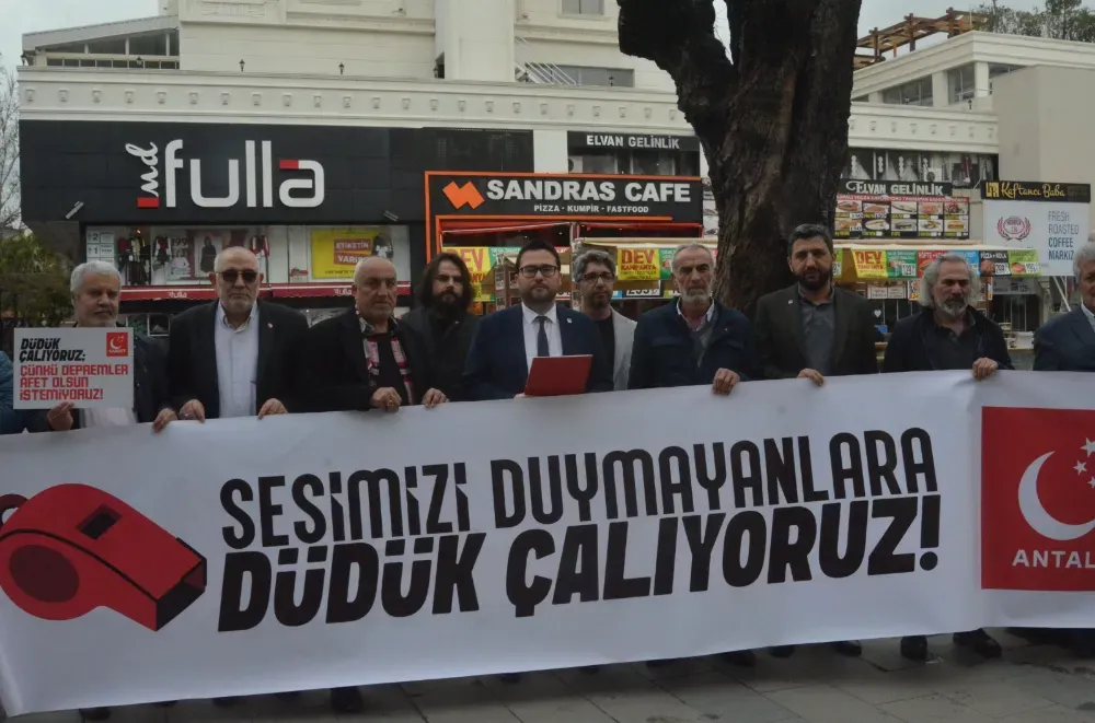 Saadet Partisi Antalya İl Başkanı Mehmet Fatih Tekin, 6 Şubat depremlerinin yıldönümüne yaklaşılırken yaptığı sert ve sembolik basın açıklamasıyla, Türkiye’nin deprem gerçeği karşısında iktidarın yıllardır değişmeyen politikalarını eleştirdi. “Sesimizi Duymayanlara Düdük Çalıyoruz” başlığıyla yapılan açıklama, yalnızca bir anma değil; aynı zamanda kamu yönetimine yönelik ağır bir ihmal ve rant eleştirisi niteliği taşıdı.