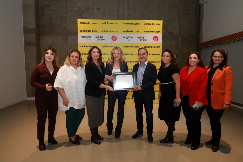 Dünya Bankası’nın teknik desteği ile KAGİDER tarafından hayata geçirilen Fırsat Eşitliği Modeli (FEM) sertifikası; KAGİDER Yönetim Kurulu Üyesi ve Özel Sektörle İlişkiler Komitesi Lideri Özlem Demirci Duyarlar tarafından, sahibinden.com CEO’su Burak Ertaş ile şirketin İnsan ve Sürdürülebilirlik Genel Müdür Yardımcısı Güntulu Peker’e takdim edildi.
