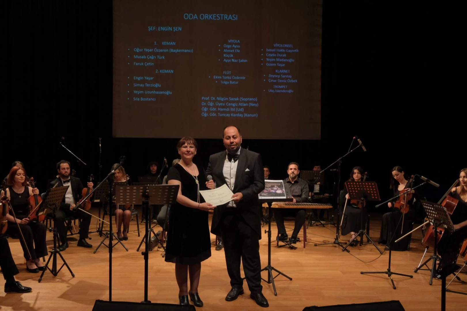 Öte yandan konserde Sakarya Üniversitesi akademisyenlerinden Prof. Dr. Nilgün Sazak da solist olarak yer aldı. Prof. Dr. Sazak; Kaptanizade Ali Rıza Bey’in “Denizde Akşam”, Muallim İsmail Hakkı Bey’in “Fikrimin İnce Gülü”, “Ah Bir Ataş Ver”, Manastır Türküsü “Bülbülüm Altın Kafeste” ile duayen bestekar Erol Sayan’ın “Kalbe Dolan O İlk Bakış” adlı eserlerinde muhteşem soprano sesiyle Oda Orkestrası’na eşlik etti. Alkışlar ile taçlanan gecede Oda Orkestrası’nın başarısı bir kez daha gözler önüne serildi.