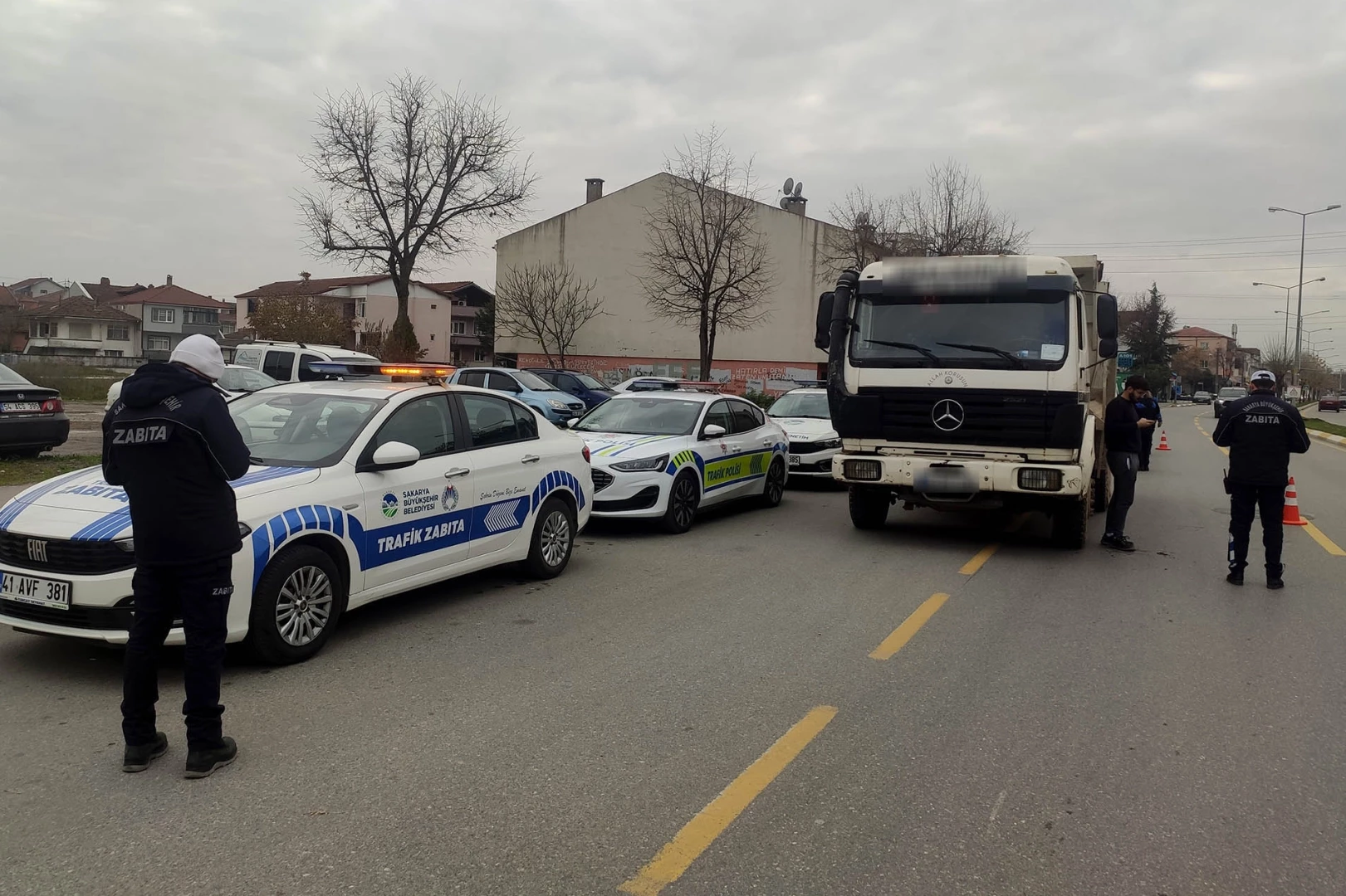 Sakarya Büyükşehir Belediyesi, İl Emniyet Müdürlüğü ile birlikte hafriyat tırları ile kamyonları, beton mikserleri veinşaat yükü taşıyan ağır tonajlı araçlara denetim yaptı.