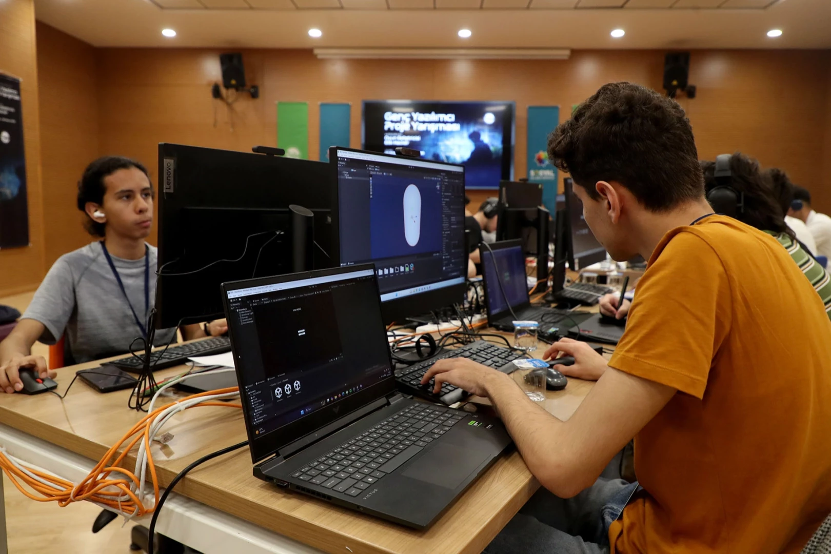 Sosyal Gelişim Merkezi’nde kurulan atölyede 14 ekip, üç gün süren yarışma boyunca tematik dijital oyunlar üretmek için yarıştı.