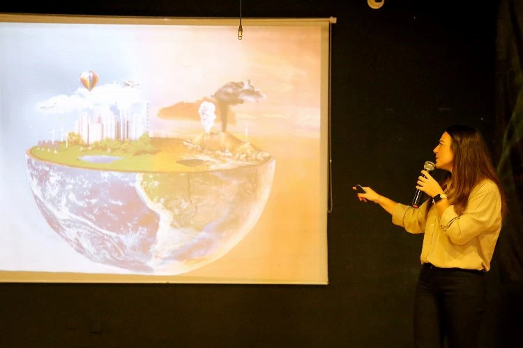 Sunumda iklim değişikliği sonucu yaşanan sel, kuraklık, orman yangınları, erozyon gibi meteorolojik karakterli afetlerin günlük yaşantımızı nasıl etkilediği anlatıldı. Aynı zamanda iklim değişikliği ile mücadele etmek için yenilenebilir enerji kaynaklarının önemi, etkin ve tasarruflu su kullanım yöntemleri, ulaşımda toplu taşıma ve bisiklet kullanımının yaygınlaştırılmasından, atık yönetim sistemleri ve geri dönüşümün öneminden bahsedildi.
