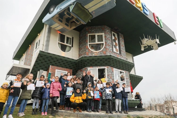 Yarıyıl tatiline giren öğrenciler Sakarya Büyükşehir Belediyesi’nin verdiği karne hediyesiyle Ters Ev’de bugün ücretsiz şekilde vakit geçirdi.