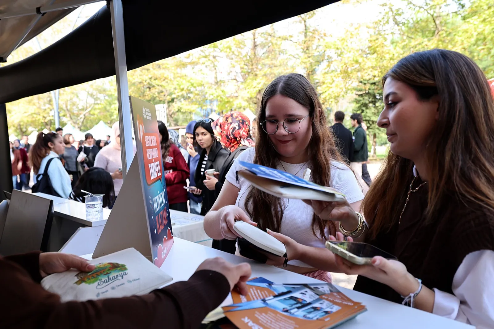 Sakarya Büyükşehir Belediyesi’nin SAÜ Öğrenci Topluluk Tanıtım Günleri’nde hediyeler, ikramlar, bisiklet çekilişi, eğlenceli etkinliklerle renklenen standı etkinliğin en çok ziyaret edilen noktası oldu.