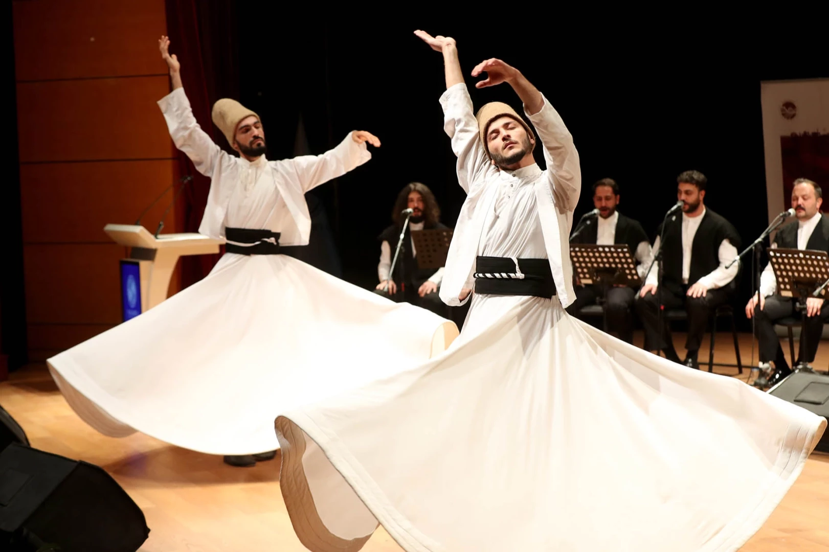 Sakarya Üniversitesi Devlet Konservatuvarı Tasavvuf Müziği Topluluğu’nun sahne aldığı programda, semazenlerin eşsiz performansı ve musikinin eşlik ettiği manevi atmosfer katılımcıları büyüledi.