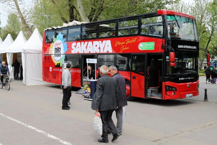 2 katlı olan ve turlar için dizayn edilen otobüs, 15-22 Nisan Turizm Haftası sebebiyle Kitap Sokağı’nda tanıtıma açıldı. Kurulan stantta Sakarya’nın turizm noktaları, doğal güzellikleri ve adım adım her noktası anlatıldı. Burayı ziyaret eden vatandaşlar, şehrini keşfetmek için yeni planlarının altyapısını oluşturdu.