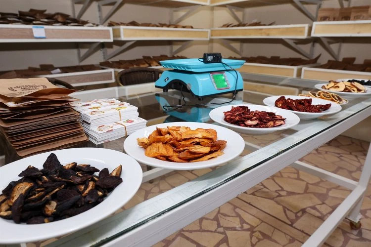 Üreticiden temin edilen meyve sebzelerin kurutma işlemlerini anlatan Başkan Yüce, “Biliyorsunuz meyvelerin çok olduğu hasat zamanlarında fiyatları da düşüyor. Biz bu anda devreye giriyor ve çiftçimizden kaliteli mahsulünü alıyoruz. Mal kabul, yıkama, seçme-ayıklama, dilimleme, kurutma fırını ve paketleme işlemlerini gerçekleştirip katma değer katarak ucuz bir şekilde satışa hazır hale getiriyoruz” dedi.