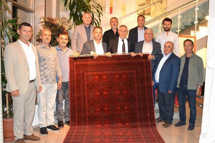 Demirci heyeti, toplantı sonunda Salihli TSO’ya, ünü ülke sınırlarını aşan ve güçlü bir marka haline gelen Demirci halısından nadide bir parçayı hediye etti. Salihli ve Demirci iş çevrelerinin temsilcileri Salihli TSO önünde bir hatıra fotoğrafı çektirdi.
