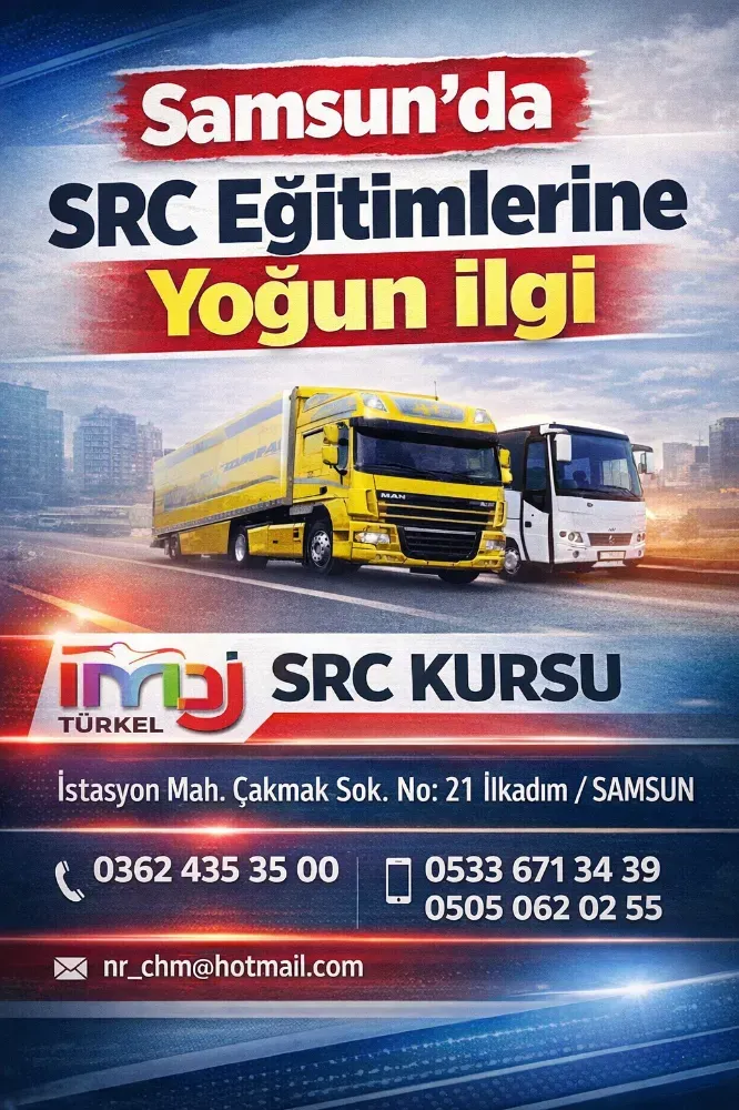 Samsun’un İlkadım ilçesinde faaliyet gösteren İmaj SRC Kursu, ticari araç sürücülerine yönelik SRC, ODY, ÜDY ve Psikoteknik eğitimleriyle dikkat çekiyor. Kurumun kurucusu ve yetkilisi Hidayet Türkel, uzun yıllardır Samsun ve Trabzon’da sürücülük ve taşımacılık alanında hizmet verdiklerini belirtti.